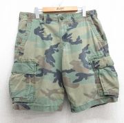 W34★古着 ギャップ GAP ショート カーゴ パンツ ショーツ メンズ 00年代 00s ウッドランドカモ コットン 濃緑 迷彩