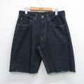 W37★古着 リーバイス Levis ショート パンツ ショーツ メンズ ヒゲ コットン 紺 デニム