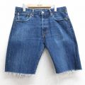 W36★古着 リーバイス Levis 501 ショート パンツ ショーツ メンズ ヒゲ コットン 紺 ネイビー デニム 25jul09 中古 ボトムス 短パン ショーパン ハーフ