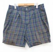 W34★古着 セントジョンズベイ ショート パンツ ショーツ メンズ コットン 紺他 チェック