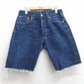 W32★古着 リーバイス Levis 501 ショート パンツ ショーツ メンズ ヒゲ コットン 濃紺 ネイビー デニム 25jul10 中古 ボトムス 短パン ショーパン ハーフ
