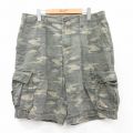 W38★古着 ユニオンベイ ショート カーゴ パンツ ショーツ メンズ コットン 緑 迷彩