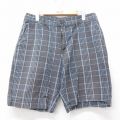 W34★古着 ショート パンツ ショーツ メンズ リネン 紺他 チェック