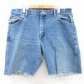 W38★古着 ラングラー Wrangler ショート パンツ ショーツ メンズ ヒゲ コットン 紺 ネイビー デニム 25aug05 中古 ボトムス 短パン ショーパン ハーフ