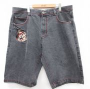 W42★古着 ショート パンツ ショーツ メンズ インディアン オオカミ 大きいサイズ 黒 デニム他