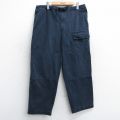 W42★古着 ナイロン カーゴ パンツ メンズ 大きいサイズ 紺 内側フリース