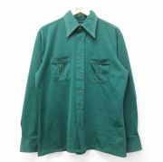 L★古着 長袖 シャツ メンズ 70年代 70s 緑