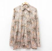 L★古着 長袖 シャツ メンズ 70年代 70s 総柄 ロング丈 薄茶他