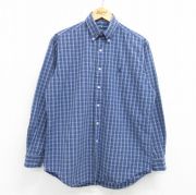 L★古着 ラルフローレン チャップス 長袖 ブランド ポロ シャツ メンズ 90年代 90s ワンポイントロゴ コットン 紺他 チェック