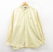 XL★古着 ラルフローレン 長袖 ブランド シャツ メンズ 90年代 90s ワンポイントロゴ BLAIRE 大きいサイズ コットン ボタンダウン 黄
