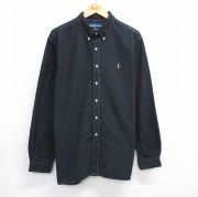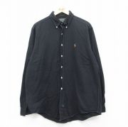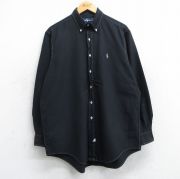 XL★古着 ラルフローレン 長袖 ブランド シャツ メンズ 90年代 90s ワンポイントロゴ 大きいサイズ コットン ボタンダウン 黒