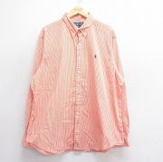 XL★古着 ラルフローレン 長袖 ブランド シャツ メンズ 90年代 90s ワンポイントロゴ 大きいサイズ コットン ボタンダウン オレンジ他 ストライプ