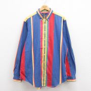 XL★古着 ラルフローレン 長袖 ブランド シャツ メンズ 90年代 90s ワンポイントロゴ 大きいサイズ マルチカラー コットン ボタンダウン 紺他