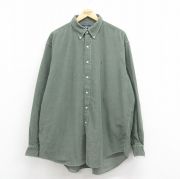 XL★古着 ラルフローレン 長袖 ブランド シャツ メンズ 90年代 90s ワンポイントロゴ 大きいサイズ ロング丈 コットン ボタンダウン 緑