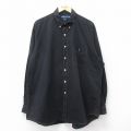 XL★古着 ラルフローレン 長袖 ブランド シャツ メンズ 90年代 90s ワンポイントロゴ BIG SHIRT 大きいサイズ ロング丈 コットン ボタンダウン 黒