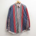 XL★古着 トミーヒルフィガー TOMMY HILFIGER 長袖 ブランド シャツ メンズ 90年代 90s ワンポイントロゴ 大きいサイズ ロング丈 コットン ボタンダウン 紺 ネイビー ストライプ 24nov01 中古 トップス