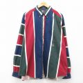 XL★古着 トミーヒルフィガー 長袖 ブランド シャツ メンズ 90年代 90s ワンポイントロゴ 大きいサイズ コットン ボタンダウン 赤系他 ストライプ
