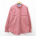 XL★古着 トミーヒルフィガー 長袖 ブランド シャツ メンズ 90年代 90s ワンポイントロゴ 大きいサイズ コットン ボタンダウン 赤系他 ストライプ
