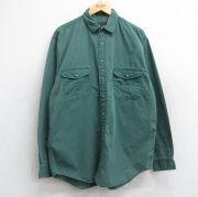 XL★古着 エディーバウアー 長袖 ブランド シャツ メンズ 90年代 90s ロング丈 コットン 緑