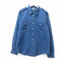 XL★古着 ラルフローレン チャップス 長袖 ブランド シャツ メンズ 90年代 90s ワンポイントロゴ 大きいサイズ コットン ボタンダウン 紺 デニム