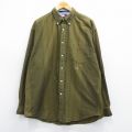XL★古着 トミーヒルフィガー 長袖 ブランド シャツ メンズ 90年代 90s ワンポイントロゴ コーデュロイ ロング丈 コットン ボタンダウン 緑
