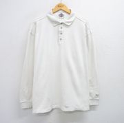 XL★古着 リーボック 長袖 ブランド ポロ シャツ メンズ ワンポイントロゴ 鹿の子 コットン 白