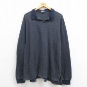 XL★古着 長袖 ブランド ポロ シャツ メンズ 90年代 90s ワンポイントロゴ コットン 開襟 オープンカラー 紺他