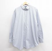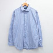 XL★古着 ラルフローレン 長袖 ブランド シャツ メンズ 90年代 90s MERRIN 大きいサイズ ロング丈 コットン 薄紺他 ストライプ