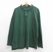 XL★古着 ラルフローレン 長袖 ブランド ポロ シャツ メンズ 90年代 90s ワンポイントロゴ 鹿の子 大きいサイズ コットン 緑