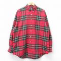【商品名】 XL★古着 ラルフローレン 長袖 ブランド シャツ メンズ 90年代 90s ワンポイントロゴ 大きいサイズ ロング丈 コットン ボタンダウン 赤他 タータン チェック【spe】