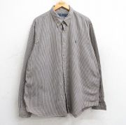 XL★古着 ラルフローレン 長袖 ブランド シャツ メンズ ワンポイントロゴ 大きいサイズ コットン ボタンダウン 茶他 チェック
