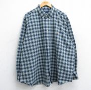 XL★古着 ラルフローレン 長袖 ブランド シャツ メンズ ワンポイントロゴ 大きいサイズ ロング丈 コットン ボタンダウン 青他 チェック