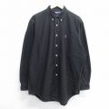 【商品名】 XL★古着 長袖 ブランド シャツ メンズ 90年代 90s ワンポイントロゴ YARMOUTH 大きいサイズ ロング丈 コットン ボタンダウン 黒