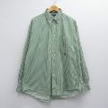 XL★古着 トミーヒルフィガー TOMMY HILFIGER 長袖 ブランド シャツ メンズ 90年代 90s ワンポイントロゴ 大きいサイズ ロング丈 コットン ボタンダウン 緑他 グリーン ストライプ 25may17 中古 トップス