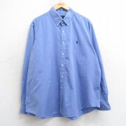 XL★古着 ラルフローレン 長袖 ブランド シャツ メンズ ワンポイントロゴ 大きいサイズ コットン ボタンダウン 薄紺