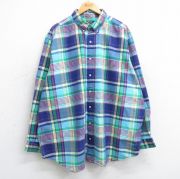 XL★古着 ラルフローレン 長袖 ブランド シャツ メンズ ワンポイントロゴ 大きいサイズ ロング丈 コットン ボタンダウン 青他 チェック