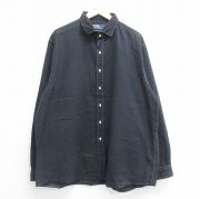 XL★古着 ラルフローレン 長袖 ブランド シャツ メンズ ワンポイントロゴ 大きいサイズ ロング丈 コットン ボタンダウン 黒