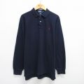 XL★古着 ラルフローレン Ralph Lauren 長袖 ブランド ポロ シャツ メンズ 90年代 90s ワンポイントロゴ 鹿の子 コットン 紺 ネイビー 25jun21 中古 トップス