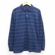 XL★古着 ノーティカ 長袖 ブランド ポロ シャツ メンズ ワンポイントロゴ コットン 紺他 ボーダー