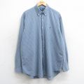 【商品名】 XL★古着 ラルフローレン 長袖 ブランド シャツ メンズ 90年代 90s ワンポイントロゴ BLAKE ロング丈 コットン ボタンダウン 薄紺他 チェック