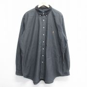 XL★古着 ラルフローレン 長袖 ブランド シャツ メンズ ワンポイントロゴ 大きいサイズ ロング丈 コットン ボタンダウン 黒他 チェック