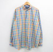XL★古着 ラルフローレン 長袖 ブランド シャツ メンズ ワンポイントロゴ 大きいサイズ ロング丈 コットン ボタンダウン オレンジ他 チェック