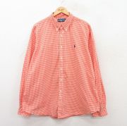 XL★古着 ラルフローレン 長袖 ブランド シャツ メンズ 90年代 90s ワンポイントロゴ 大きいサイズ コットン ボタンダウン オレンジ他 ギンガム チェック