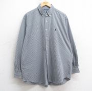 XL★古着 ラルフローレン 長袖 ブランド シャツ メンズ 90年代 90s ワンポイントロゴ BLAKE 大きいサイズ ロング丈 コットン ボタンダウン 紺他 チェック