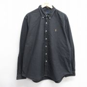 XL★古着 ラルフローレン 長袖 ブランド シャツ メンズ ワンポイントロゴ 大きいサイズ コットン ボタンダウン 黒
