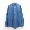 【商品名】 XL★古着 ランズエンド 長袖 ブランド シャツ メンズ 大きいサイズ ロング丈 コットン ボタンダウン 紺 デニム