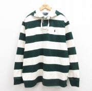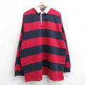【商品名】 XL★古着 ラルフローレン 長袖 ブランド ラガー シャツ メンズ 90年代 90s ワンポイントロゴ 大きいサイズ ロング丈 コットン 赤他 ボーダー