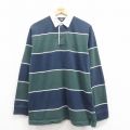 L★古着 ランズエンド 長袖 ブランド ラガー シャツ メンズ 90年代 90s コットン USA製 紺他 ボーダー