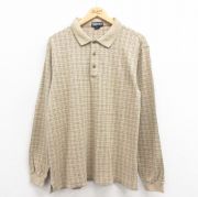 L★古着 ランズエンド 長袖 ブランド ポロ シャツ メンズ コットン ベージュ他 チェック