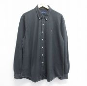 XL★古着 ラルフローレン 長袖 ブランド シャツ メンズ ワンポイントロゴ コットン ボタンダウン 黒